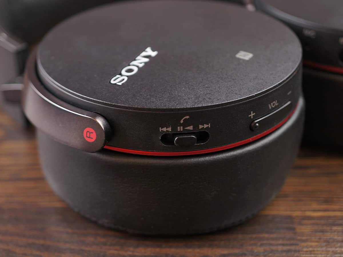 Кроме элементов управления на правой стороне Sony MDR-XB950BT расположен NFC-чип. Наушники практически мгновенно подключаются к телефону, достаточно вслепую поднести его к правой чаше гарнитуры. При повторном соединении по NFC девайс отсоединяется, а для полного отключения нужно удерживать кнопку питания в течении двух секунд.