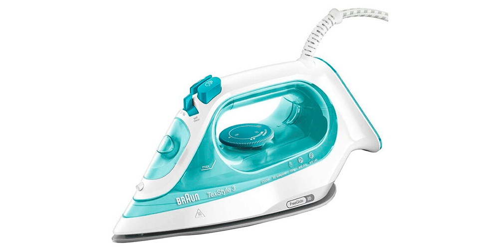 Мощный утюг Braun TexStyle TS775ETP – это хороший вариант для тех, кто не любит тратить на домашнюю работу много времени. Прибор оснащен функциями, которые значительно облегчат процесс глажки: паровой удар поможет справится со складками, вертикальное отпаривание пригодится для строгих вещей и штор, а разбрызгивание пригодится для увлажнения полотенец. У утюга с отпаривателем достаточно большой расход воды, однако большинство покупателей отметили, что предпочитают гладить с постоянной подачей пара.